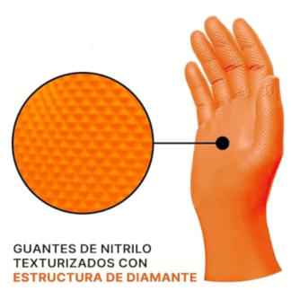 GUANTE DE NITRILO DIAMANTADO NARANJO 50 UNIDADES TALLA L CLEAN CARRIER